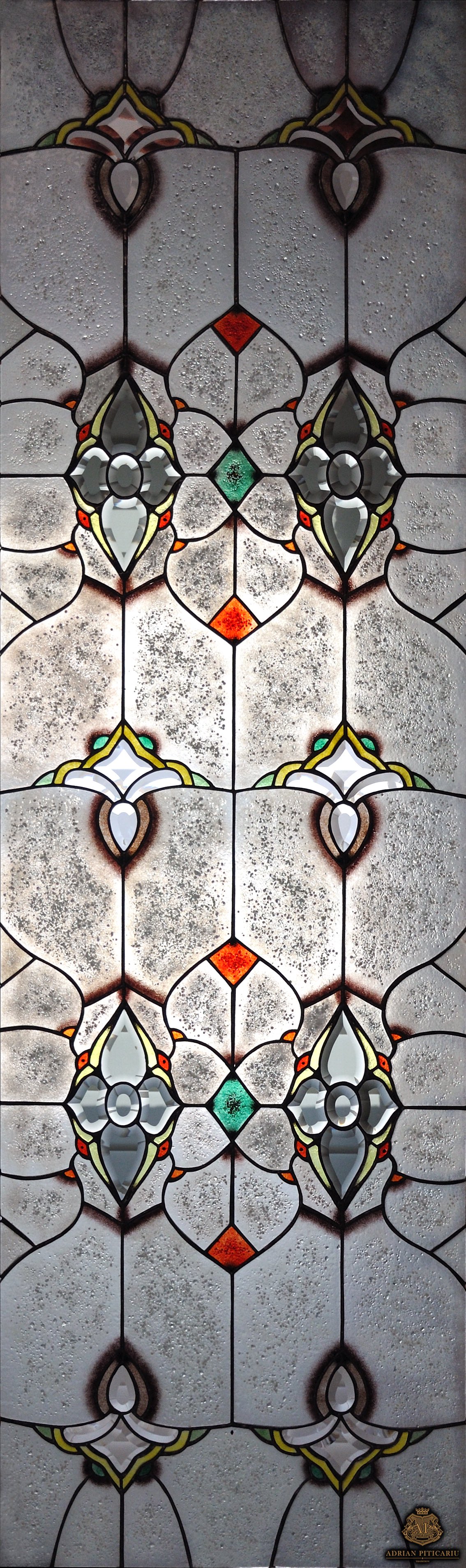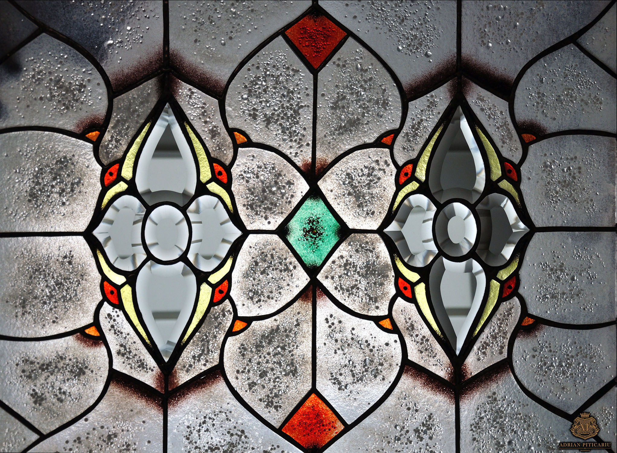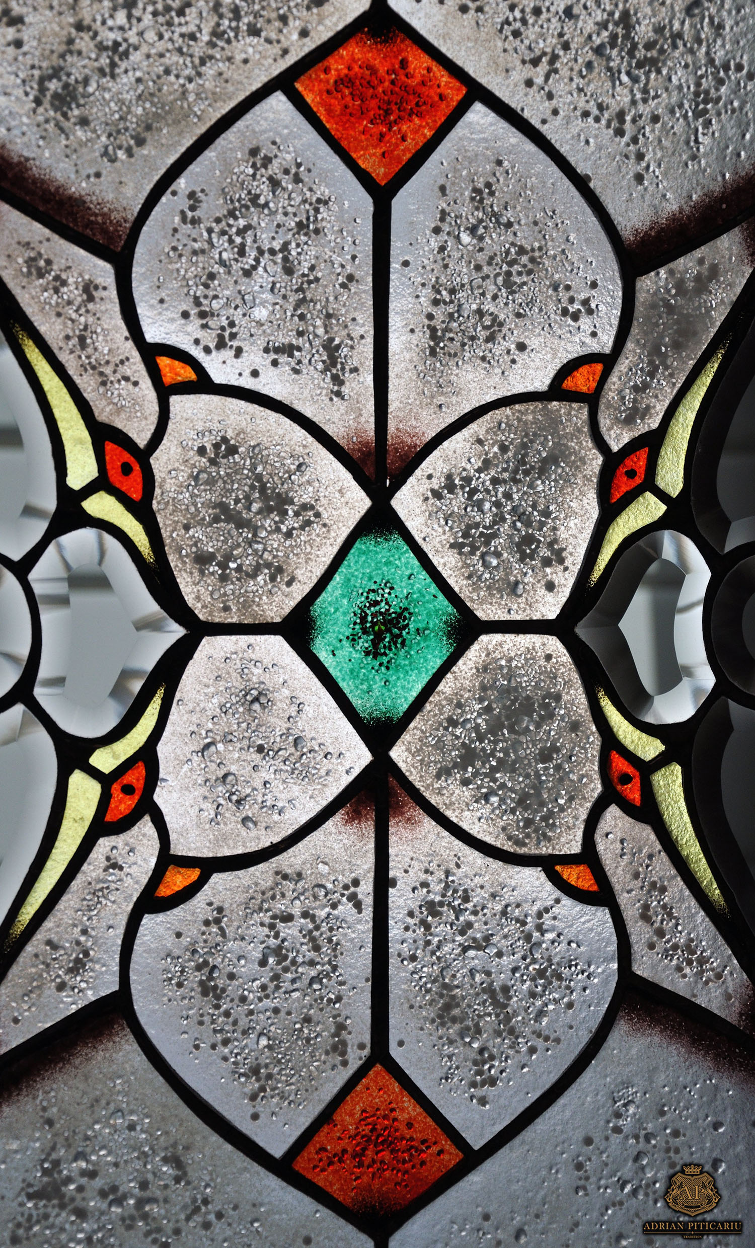 Grey crystals stained glass