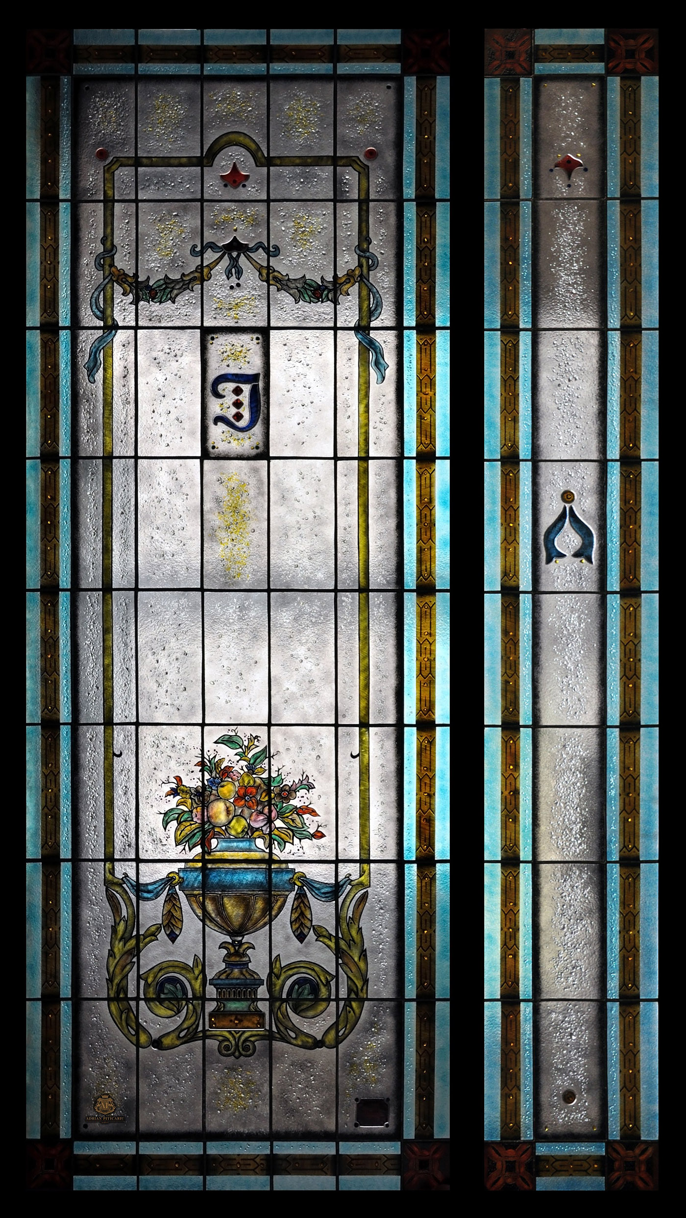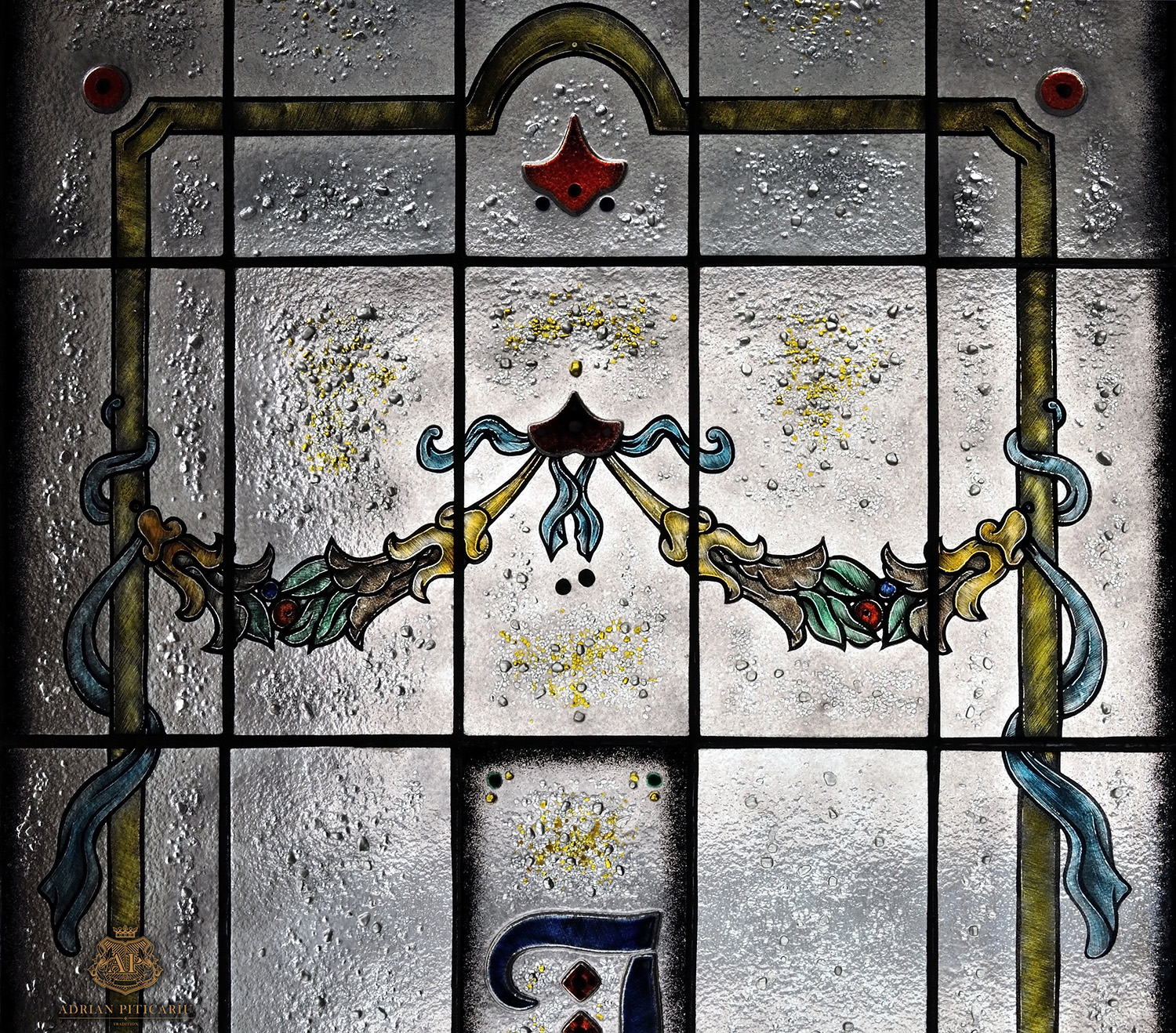 A special stained glass window made in the classic technique “grisaille” with painted glass.